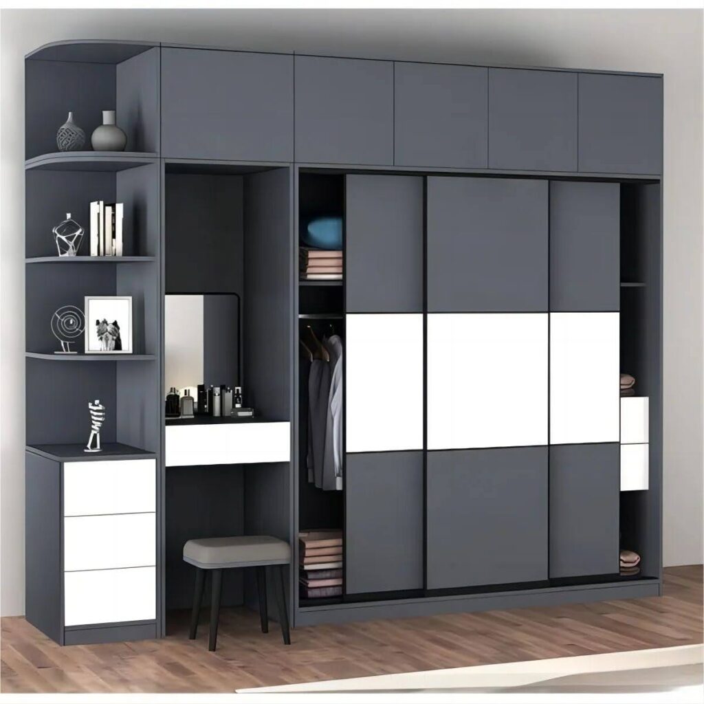 Among the most popular types of wardrobe doors, sliding doors are loved for their modern functionality. These doors glide on tracks and require no clearance space, making them perfect for small rooms.